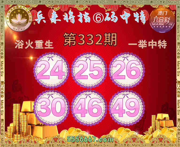 332期:〖兵来将挡〗🤩⑥码中特🤩【24.25.26.30.46.49】开:26